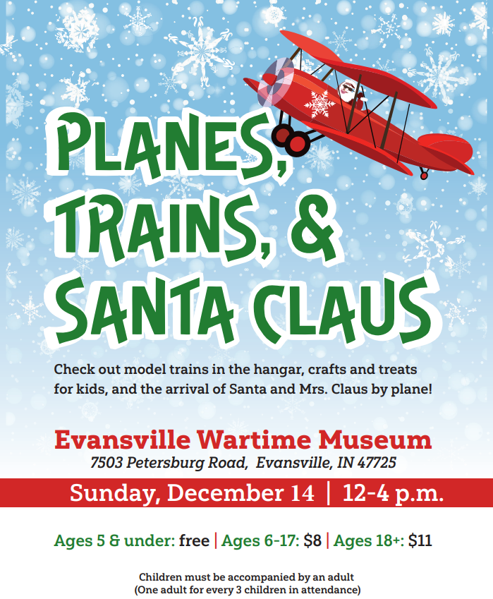 Come see Santa and Mrs. Claus arrive to the museum by plane! We will have model trains, treats, and a chance to get your photo taken with Santa!